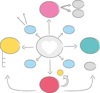 Используй разные цвета для основных ветвей, чтобы они не сливались. Но если элементы связаны, их лучше выделять одним цветом. Вербальную информацию обрабатывает левое полушарие, а цвет — правое. Таким образом, сочетание слов и цвета заставляет активнее работать обе части мозга!