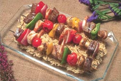 Гарнировать шашлык можно овощами, зеленым луком, рисом, подавать к блюду следует различные соусы, лимонный сок, сушеный молотый барбарис, гранатовый сок.