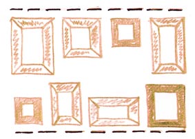 Если тебе нужно разместить на стене несколько картин, хорошенько продумай, прежде чем вбивать в нее гвозди, как эти работы будут соотноситься друг с другом. В идеале все они должны иметь нечто общее и восприниматься как единое целое (например, их может объединять тематика). Разрозненные, ничем не связанные картины можно вставить в однотипные рамки и расположить внутри условного контура.