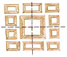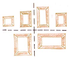Измерь на стене «участок», отведенный для их размещения. Затем с помощью бечевки или газет надо разметить эту площадь на полу и, перемещая картины, выбрать для них наиболее удачное расположение. Теперь отметь предполагаемый контур на стене – только не надо рисовать несмываемыми фломастерами! Определи положение главной картины (обычно она самая большая) и повесь ее, а потом и остальные.