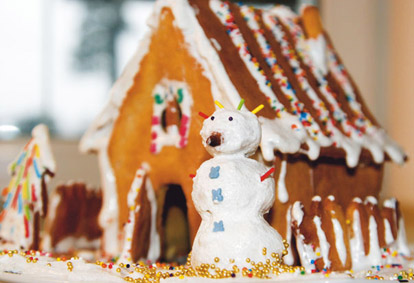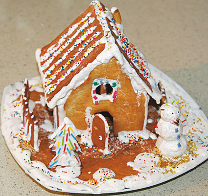 Когда опасности «обвала» крыши уже не будет, можно укрепить на ней трубу. А теперь – самое интересное – можно приступать к созданию сугробов и украшению домика!