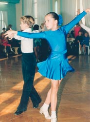Я занимаюсь бальными танцами в спортивной школе. Кроме самого танца, мы еще учим историю танца и движения классического балета. Очень часто мы ездим на конкурсы в другие города.