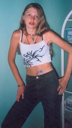 У меня есть оригинальное хобби - я придумываю татуировки. Например, у меня есть серия татуировок вокруг пупка. Кроме того люблю рисовать модные коллекции одежды. В детстве я рисовала одежку для картонной куклы. А теперь смотрю журналы мод, беру оттуда новые идеи. Рисую летние и вечерние платья. А в жизни отдаю предпочтение спортивной одежде.