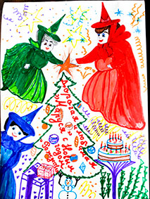 Наташа Дмитриева из города Зеленоград. На ее открытке феи вместе готовятся к Новому году. Как написала Наташа, «Конечно, они могли бы взмахнуть волшебными палочками: раз и готово! Но кто же откажется от удовольствия самому нарядить елочку!».