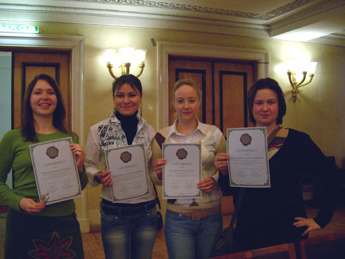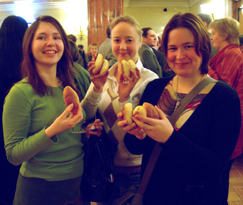 Дорогие девчонки! Нам очень приятно поделиться с вами приятной новостью. 9 февраля в Российской государственной библиотеке ответственный редактор журнала "Маруся" Ольга Шальнева и редактора разделов Екатерина Маненкова, Ирина Погодина, Анастасия Компанцева, Екатерина Скобелева получили именные сертификаты за "вклад в совершенствование журнала "Маруся". Сам журнал наградили Знаком отличия XIII Международной профессиональной выставки "Пресса" "Золотой фонд прессы". Кроме того, организаторы угостили замечательными пирожками (см. фото). Все остались довольны!