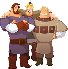 В ролях: богатыри (полный комплект из трех), известный всем Горыныч и неопознанный динозаврик, конь Юлий и прочая флора и фауна затридевятых земель.