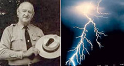 Народная мудрость гласит: «Молния в одно место два раза не ударяет». А в одного человека – запросто! Лесника из Вирджинии Роя Салливана, например, мощные искровые разряды били целых семь раз. Первый удар бедолага получил в 1942 году на смотровой вышке. Молния попала ему в ногу, и Салливан лишился ногтя на большом пальце. Отойдя от шока, Рой успокоился и решил, что второй раз подобное с ним никогда не случится. Но не тут-то было. Через двадцать семь лет молния вновь настигла лесника и опалила ему брови.