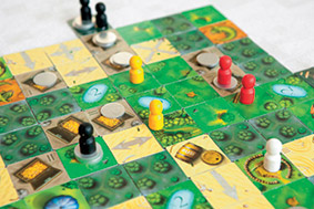 Как играть? Ваша задача – строить города, монастыри, возделывать поля и прокладывать дороги, выкладывая кусочки карты, а также управлять своими подданными – крестьянами, разбойниками, монахами и рыцарями. Любой достроенный объект в финале приносит своему обладателю очки.