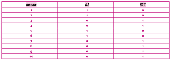 Ответь «да» или «нет», подсчитай баллы по табличке внизу и узнай результат.
