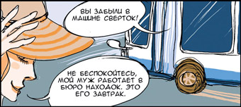 – Не беспокойтесь, мой муж работает в бюро находок. Это его завтрак.