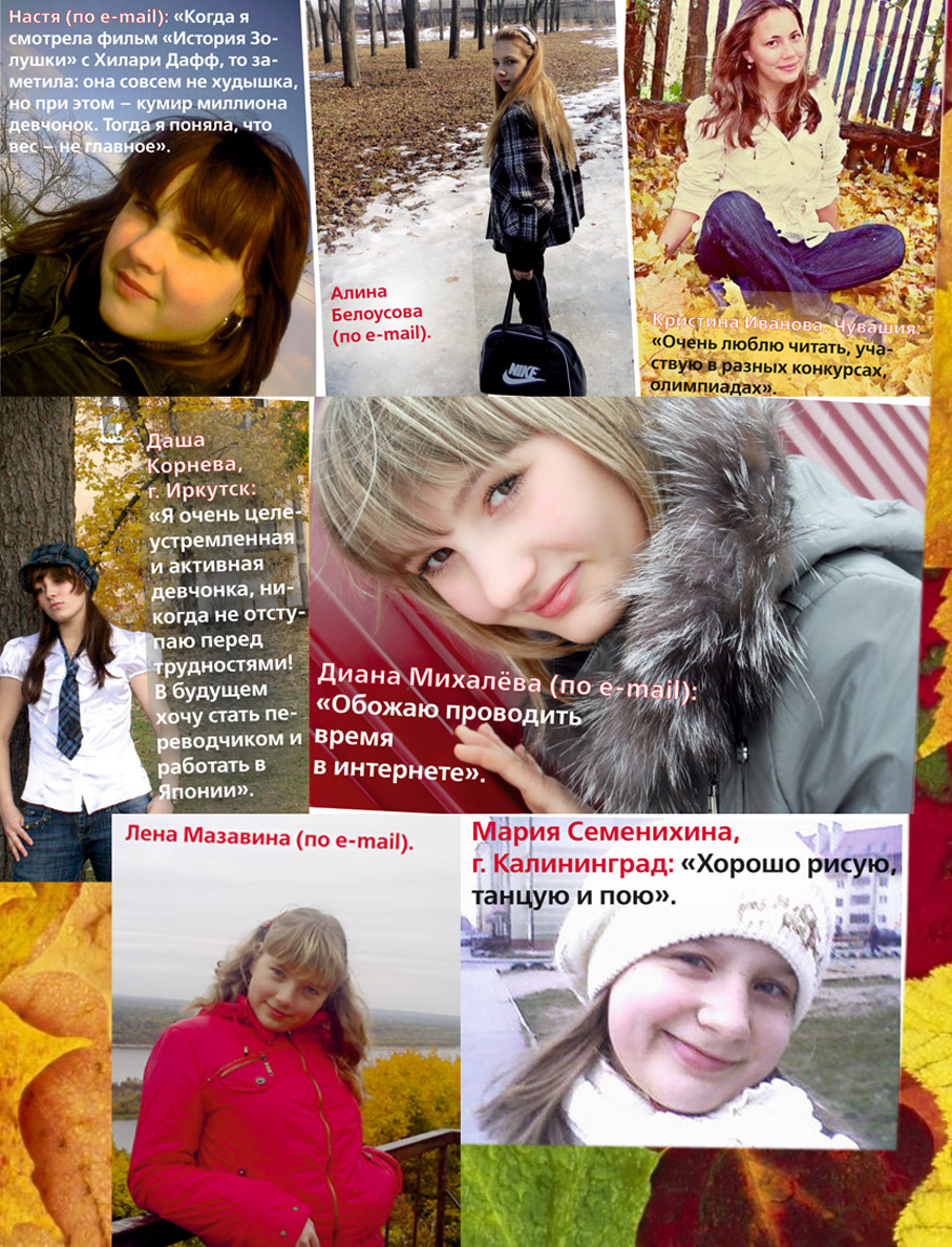 Девчонки, если присылаете свои фотографии по электронной почте, не забывайте указывать, из какого вы города, и писать пару строчек о себе. Нам всегда интересно поближе познакомиться с читательницами!