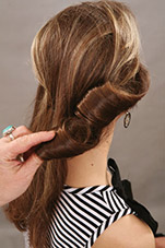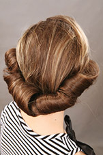 Эти самые «валики» могут быть сзади и спереди (челка), сбоку, а также – с двух сторон. Кроме того, характерно накручивание локонов от середины длины вниз, к кончикам.