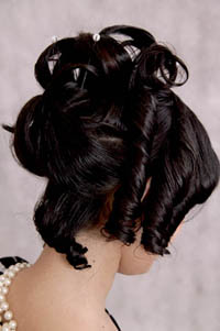 Волосы сзади поднимаем наверх, делаем из них пышную высокую прическу. Она может быть разных видов.