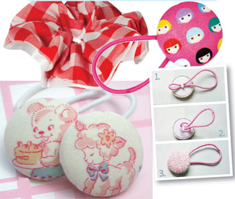 Вот такие вот пестрые кругляши на резиночках сейчас тоже очень актуальны. Цветовая гамма и количество «пуговок», которые украсят твою прическу, – на твой вкус. Их, кстати, тоже можно сделать самой. Поищи дома обтяжные пуговицы (или купи их в магазине «Все для шитья»), продень в отверстие на ножке резинку и получишь стильный аксессуар.